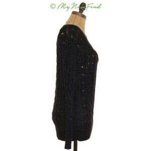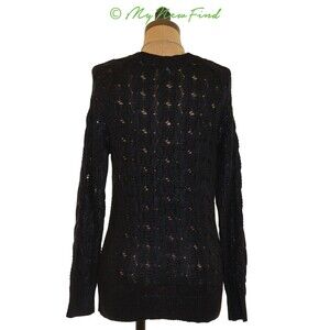 Halogen Nordstrom Sweater Top Size PM Foiled Cable Bateau Neck Black EUC B82
