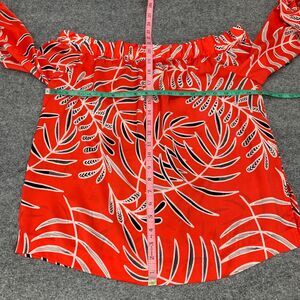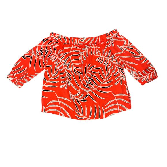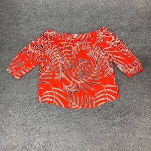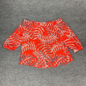 Halogen Off Shoulder Blouse Womens S Small Poppy Leaf Crop Top Mid Sleeve Shirt