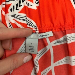 HALOGEN OFF SHOULDER BLOUSE WOMENS S SMALL POPPY LEAF CROP TOP MID SLEEVE SHIRT