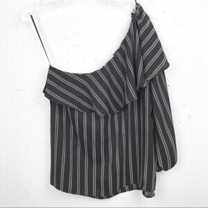 Halogen One Shoulder Ruffle Stripe Blouse Black Sm