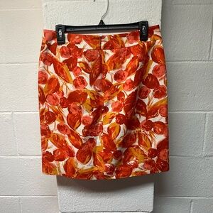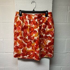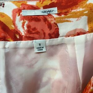 Elevate your casual wardrobe with this vibrant Halogen pencil skirt, featuring a dynamic orange and red pattern. Designed for resort wear, this knee-length skirt offers a structured fit that complements its bold color palette. Perfect for a relaxed yet stylish look.