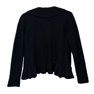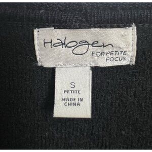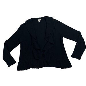 Halogen Petite Focus Small Women Sweater Black 100% Merino Wool Ruffles Open