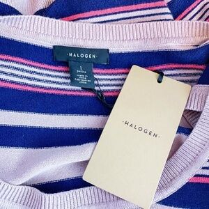 Halogen Pink Navy Stripe Knit Tank Top NWT