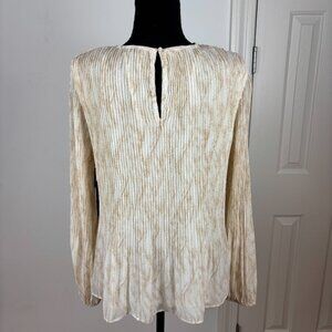 Halogen Pleated Release Top Ivory White Gathered Long Sleeve Blouse Size M