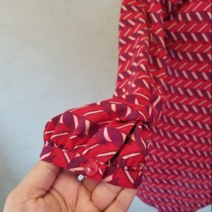 in perfect condition Halogen Print Shirred Split Neck Blouse with 4 buttons.