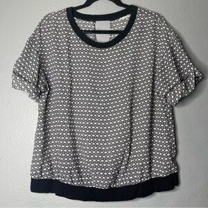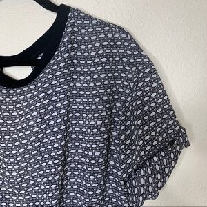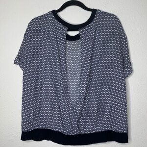 Halogen Black White printed open back blouse top. Woman’s petite size large. Gently used, no flaws