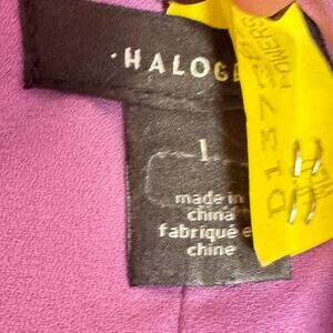 Halogen Purple Floral Chiffon Long Sleeve Midi Dress Smocked Cuffs Front Side Slit Lined Pleated Crossover V-Neck Top MSRP: $108