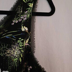 Halogen Raw Edge Floral V-Neck Sleeveless Tank Top - Black and Green