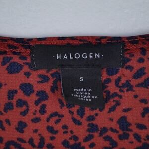 Halogen Red Animal Print Short Sleeve Ruched Front Blouse Sheer Size Small