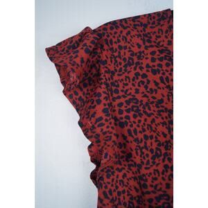 Halogen Red Animal Print Short Sleeve Ruched Front Blouse Sheer Shirt Size Small