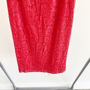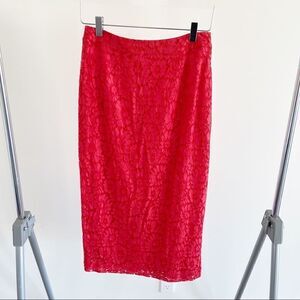 Halogen Red Lace Midi Skirt Crochet High Waisted