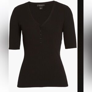 Halogen ribbed black v neck buttoned henley top, size L. 86% viscose/14% polyester, machine washable. New without tags.