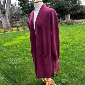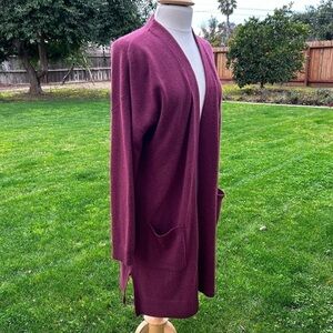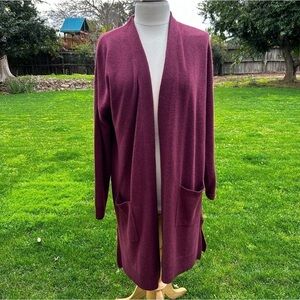 Excellent condition Halogen Rib Knit Wool & Cashmere Long Cardigan. 2 front slip pockets on front. Slits on each side.