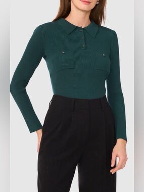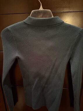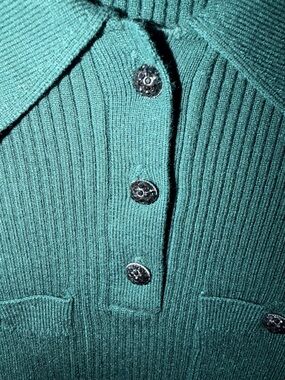 Elegant ribbed shirt with button accents. Features long sleeves and a classic collar. Ideal for any occasion. JUNE BUG GREEN