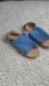 Royal blue leather, suede upper. Balance man made material for rest of sandal.