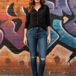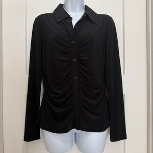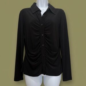 Halogen Ruched Button-Front Top Black M
