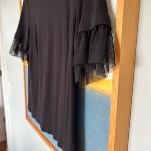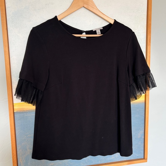 Halogen Ruffle Sleeve Top - boxy cut thick black tshirt with tulle ruffle sleeves. Nordstrom exclusive.