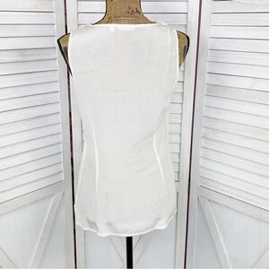Halogen Ruffle Trim Neck Sheer Silk Sleeveless Top Cream Small