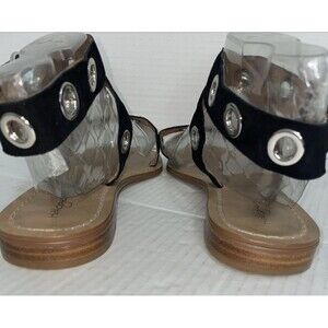 Halogen Sandals Size 12 Black Leather Ankle Strap Grommet Gladiator Flat Casual