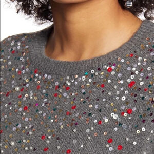 A crew neck sweater is taken from everyday cozy classic to around-the-clock festive topping with a rainbow sprinkling of shimmering sequins.