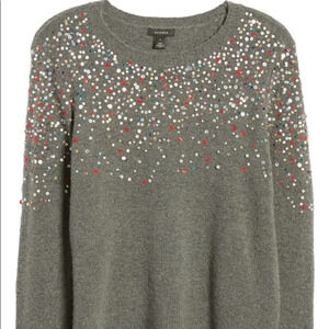 Halogen Sequin Crewneck Sweater Blouse Top Gray