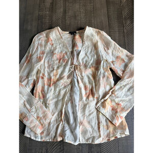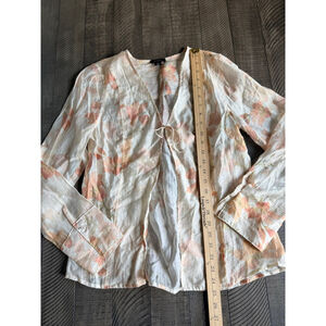 Halogen Sheer Floral Blouse Tie Front Long Sleeve Top Women’s Size M NWT
