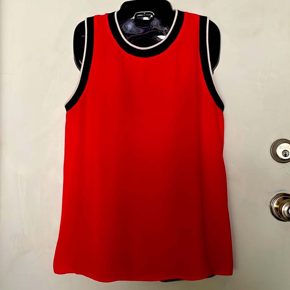 Bright Red Orange with Black & White Trim on Sleeves and Neck, Sheer/Chiffon Material