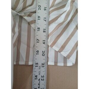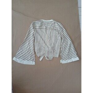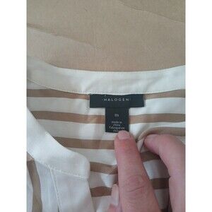 Halogen Shirt Top Blouse Womens M Beige Striped Bell Sleeve Cropped Classic
