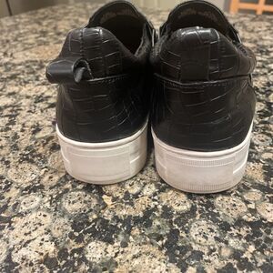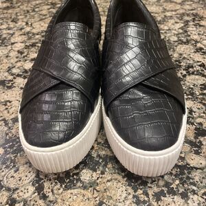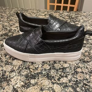 Halogen Shoes Womens 9.5 M Leather Black Snake Skin Print Platform Slip-ons. Excellent condition. Shows little wear.