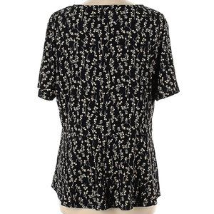Halogen Short Sleeve Top Black Floral V Neck Ruched Large