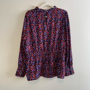 Halogen Size 2X Black Orange Purple Floral Blouse Long Sleeves