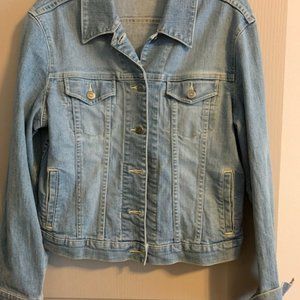 Halogen Size L Women's Faded Denim Jacket Long Sleeve Four Pocket Button Front