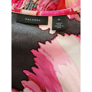 Halogen Size Medium Floral Long Sleeve Retro Polyester Blouse with Elastic Waist