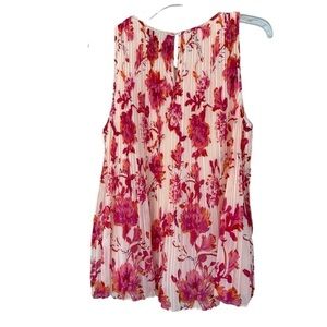 Halogen Sleeveless Pleated Top in Pink Sheer Meadow Floral, Medium