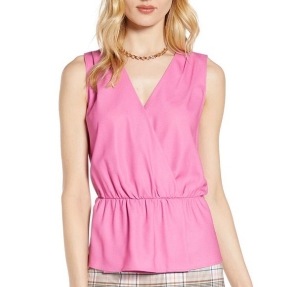 NWOT! Halogen Sleeveless Wrap Front Peplum Pink Top, V Neck. No stretch.