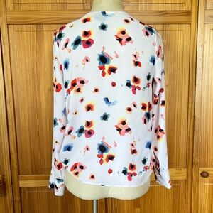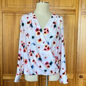 Halogen Small Vneck Faux Wrap Floral Absteact Blouse Office Business Colorful