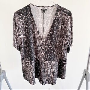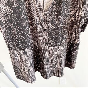 Super cute, snake print, button up detail, short sleeves. New without tags. Size 2X, has stretch 25" pit to pit 25" long Z571