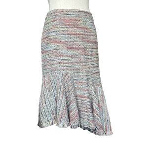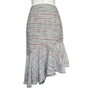 Halogen Spring Tweed Frayed Hem Skirt Multi-Color Straight Asymmetrical Size 2