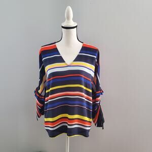 Halogen Striped Color Block Tie Sleeve Blouse Top Size S