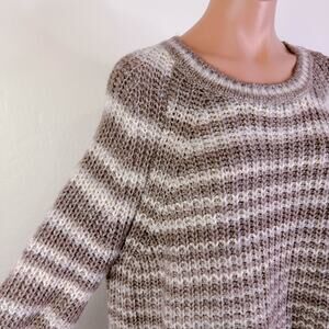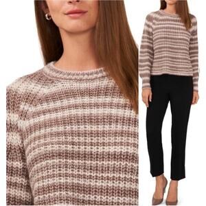 Halogen Striped Crew Neck Chunky Knit Pullover Sweater White Beige Fall