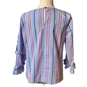 Halogen Striped Ruffled Blouse in Blue