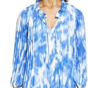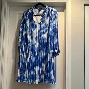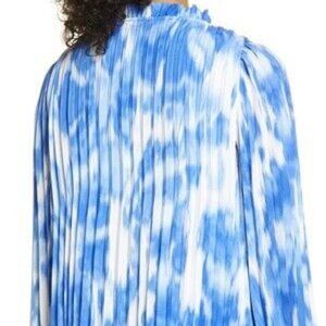 Halogen Sunburst Pleat Long Sleeve Dress - Blue & Ivory Brush Wash - Sz S