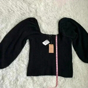 Halogen Sweater. Ballon sleeves. Fitted. Square neck. Black. Size XL. NWT.