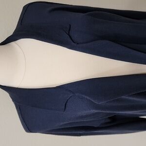 Halogen Sweater Blazer Cardigan Open Front Longer Navy Merino Wool Blend size Medium