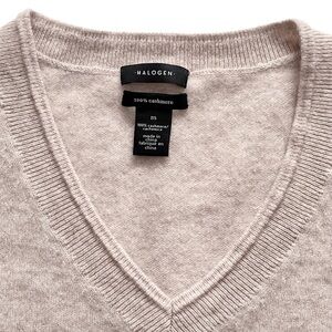 Halogen Sweater Cream 100% Cashmere V-Neck Pullover Size Small Medium