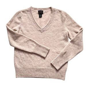 Halogen Sweater Cream 100% Cashmere V-Neck Pullover Size Small Medium