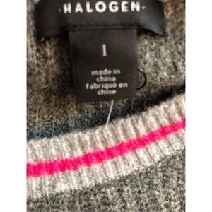 Halogen Sweater Grey Heather Stripe Neck Crew Neck Pullover XL