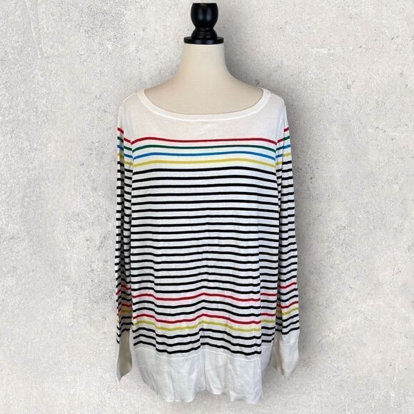 Halogen Sweater White Rainbow Stripe Pima Cotton, New w/ Tags, Size 3X