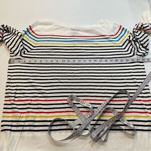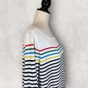 Halogen Sweater White Rainbow Stripe Pima Cotton, New w/ Tags