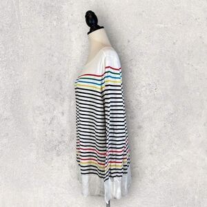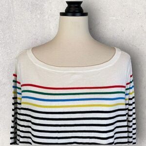 Halogen Sweater White Rainbow Stripe Pima Cotton, New w/ Tags